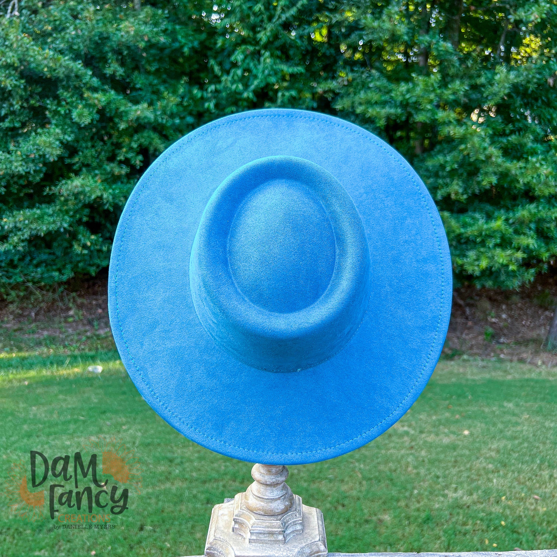 Light Teal Pork Pie Style Wide Brim