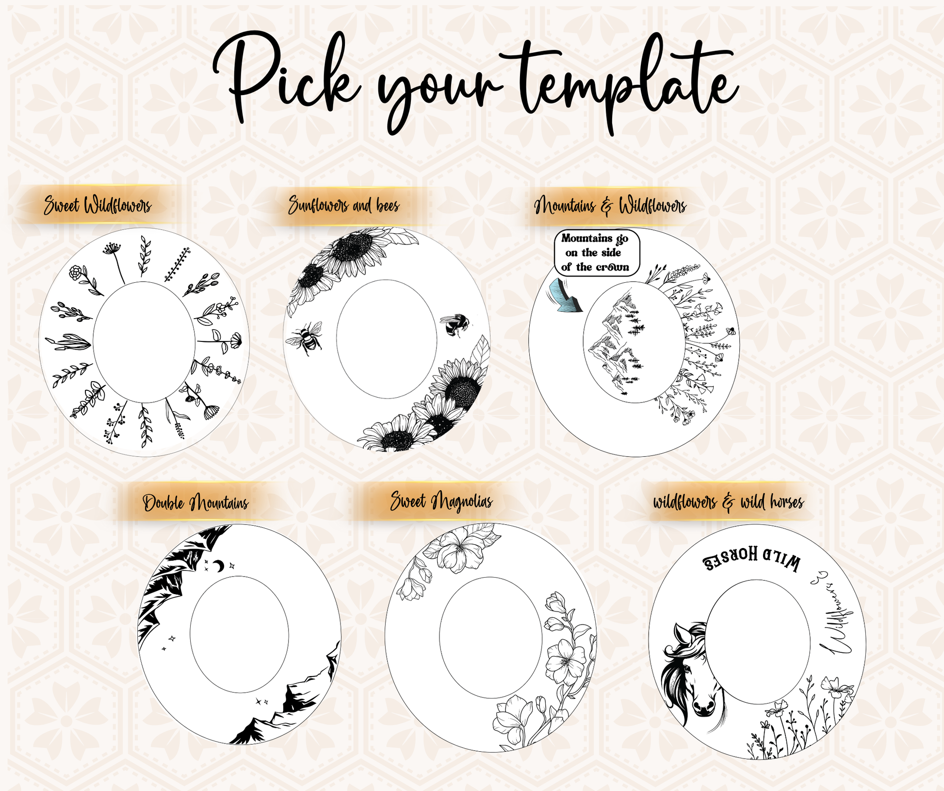 First step, choose your template! Templates will be pre-printed and ready for you to burn as soon as you walk through the door! Hat colors will be chosen at the event. I bring a wide variety for everyone to choose from.